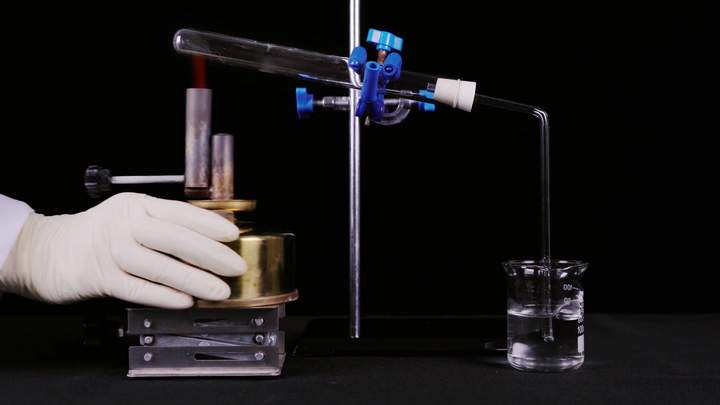 3、点燃酒精灯加热混合物。可以使用酒精灯加网罩以集中火焰,提高温度,或者使用酒精喷灯效果更好。